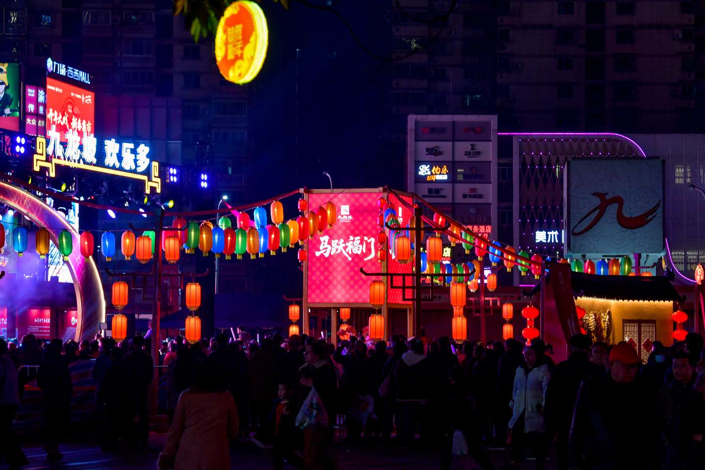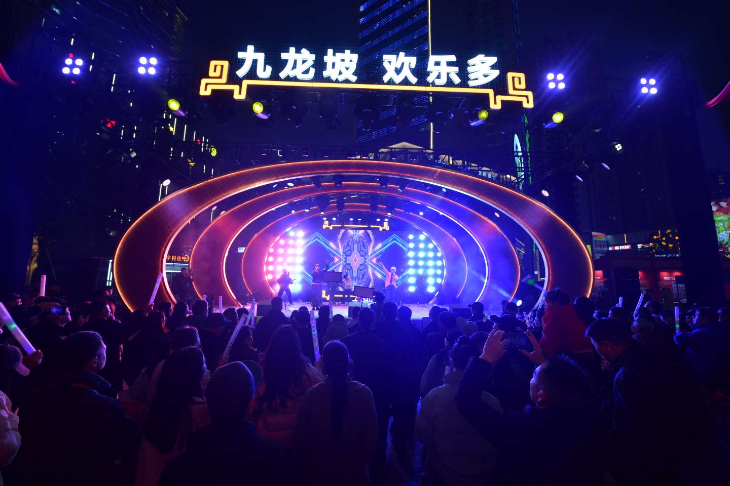 九龙融媒讯(记者 范坤民 曹鸣鸥 实习生 李沛轩)2月10日晚,在杨家坪步行街九龙印广场,“欢欢喜喜过大年·龙马奔腾贺新春”新春主题展演第二场——“念念九时光·新年音乐会”精彩开演。这场由区文化旅游委主办的音乐盛宴,以音符为媒、以时光为引,将传统年味与时尚活力完美融合,为现场的市民游客带来了一场沉浸式的视听狂欢,也让九龙坡的新春夜晚洋溢着别样的欢乐气息。