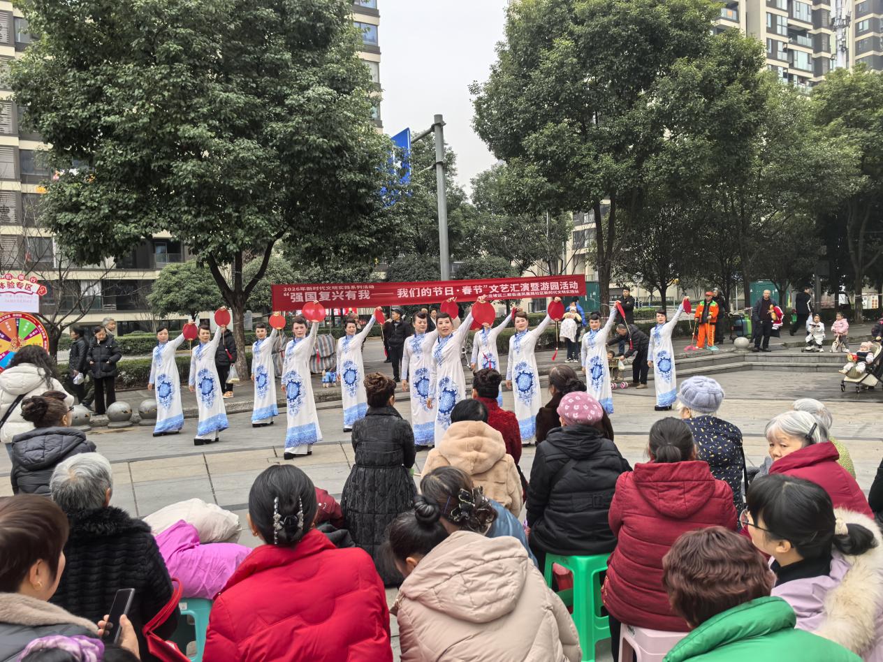 九龙融媒讯(记者 冉冉 摄影报道)2月2日,二郎街道凤凰路社区新时代文明实践站联合辖区中铁地产、重庆农村商业银行、二郎派出所、二郎社区卫生服务中心,在中国铁建玖城壹号商业区开展“强国复兴有我——我们的节日·春节”文艺汇演暨游园活动,将文化盛宴与便民服务送到居民家门口,让邻里情在欢声笑语中愈发浓厚。