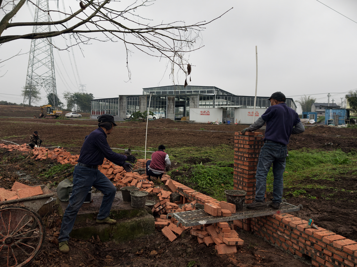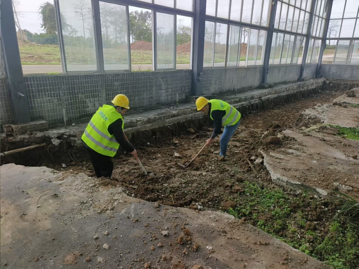 在项目建设现场,记者看到,养殖车间大棚已全部搭建完成,工人们正有序清理棚内杂草,为后续仿生池修建做好前期准备。