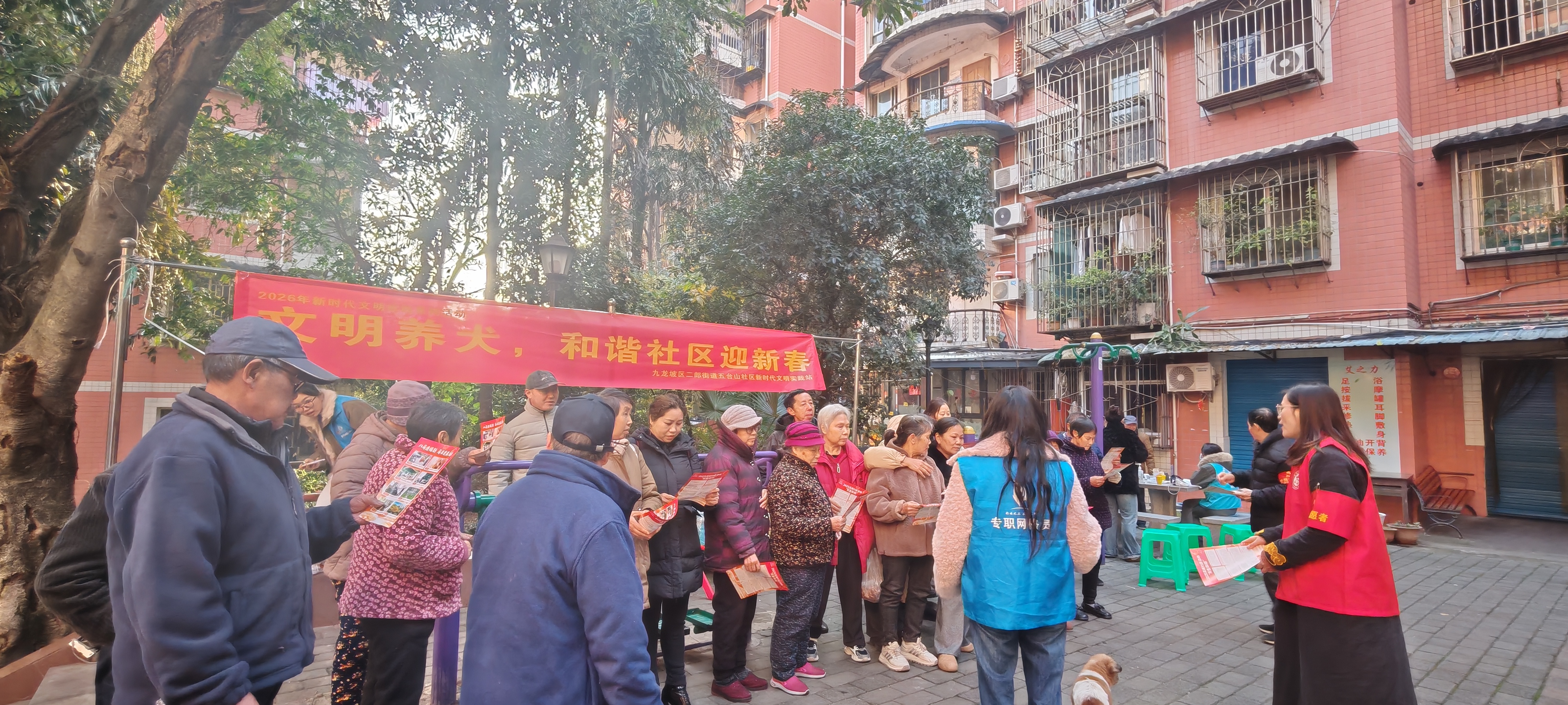 九龙融媒讯(记者 冉冉 摄影报道)近日,二郎街道五台山社区在九杨兴村小区开展了“文明养犬,和谐社区迎新春”宣传活动,为新春增添了一抹别样的文明色彩。
