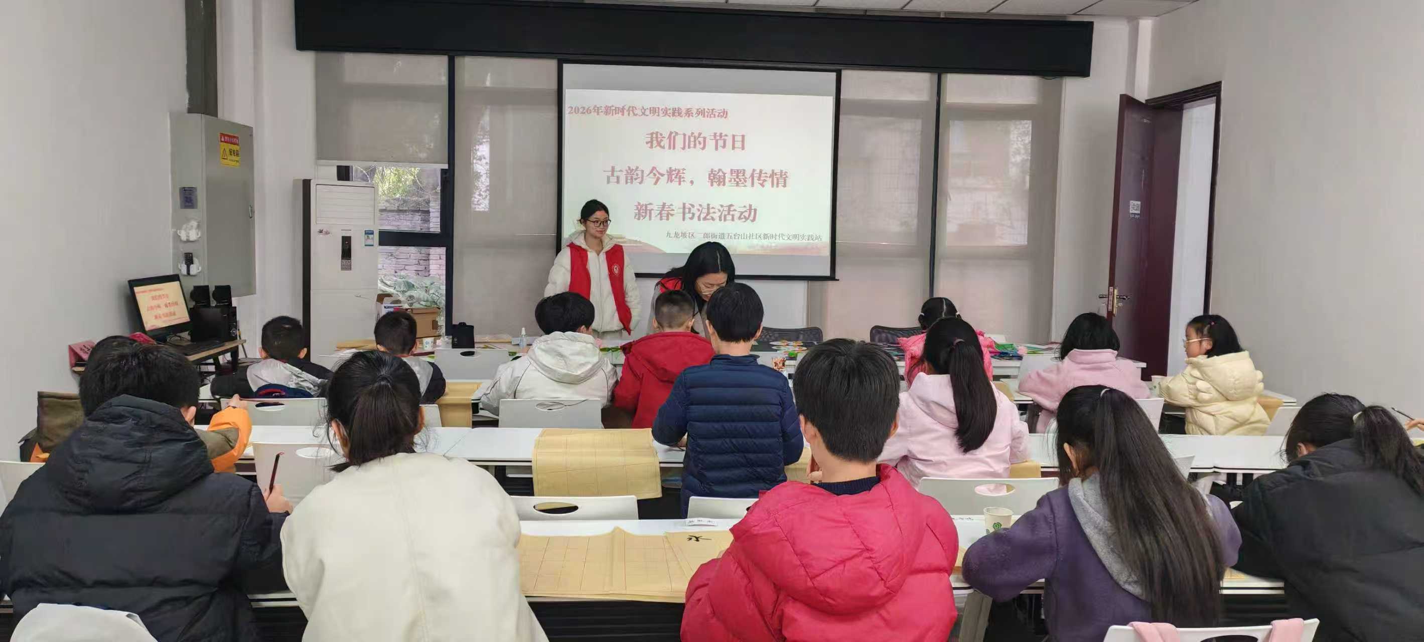 九龙融媒讯(记者 冉冉 摄影报道)近日,二郎街道五台山社区开展了“我们的节日——古韵金辉,翰墨传情”新春书法活动。此次活动吸引了众多青少年踊跃参与,现场墨香四溢,洋溢着新春的喜悦与文化的韵味。