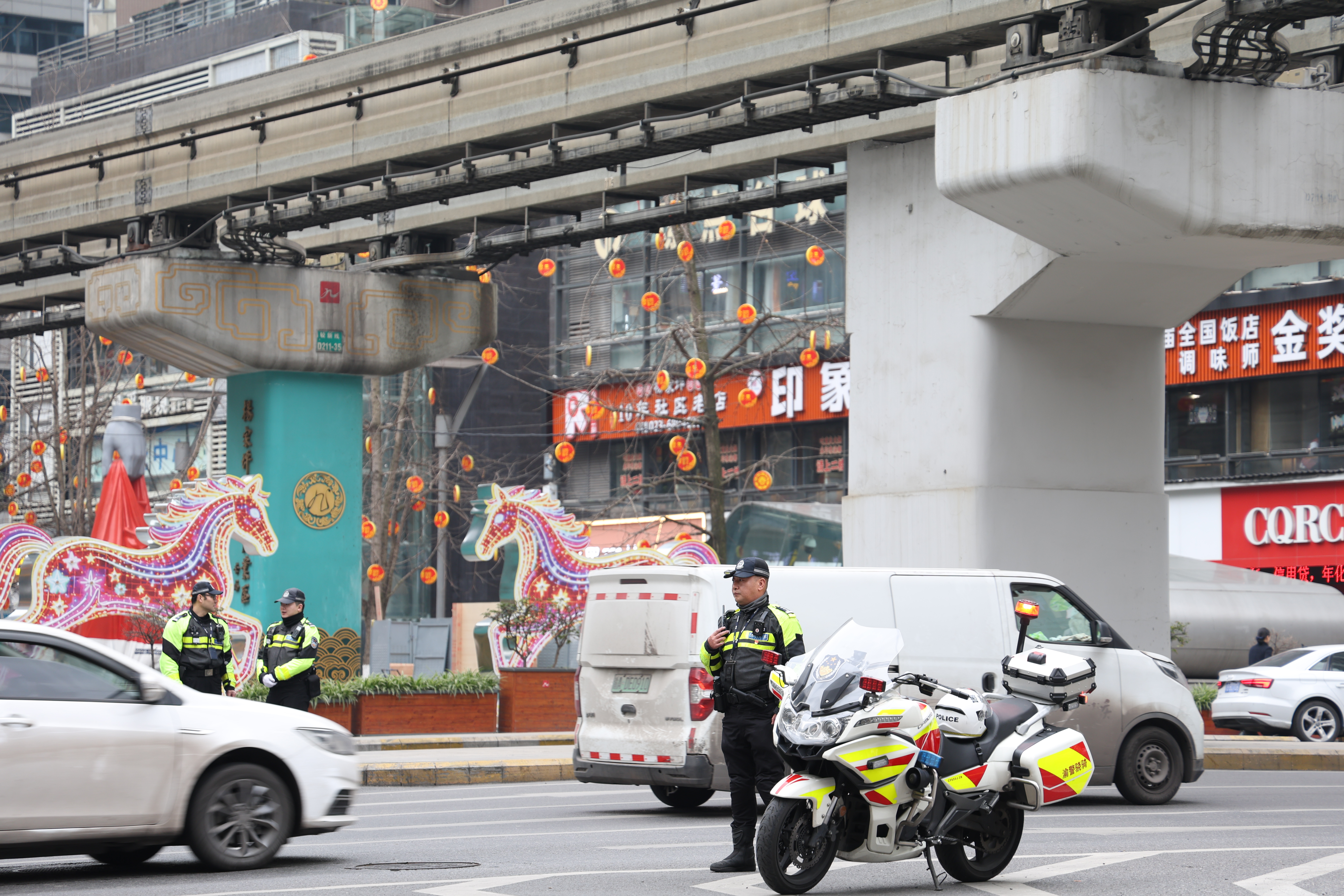 交通保畅全域覆盖,安全出行护航节庆。区公安交管部门紧盯春节民俗活动与春运出行返程高峰,提前摸排、精准施策,及时向市民游客发布线上线下出行提醒,全力疏堵保畅,同时持续开展交通违法整治,确保群众节日期间出行安全。在华岩旅游区初一、初五等重要时段,九龙坡警方精准实行交通管制措施,采取远端分流、近端管控、核心封闭措施,开辟周边道路单排顺向临停,执勤民警辅警顶风冒寒、昼夜坚守,有序疏导车流人流,活动全程未发生长时间拥堵及安全事故。