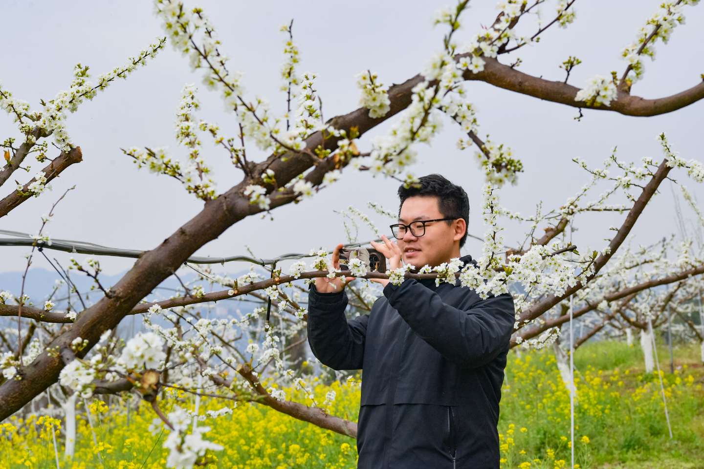 眼下,合作社的工人们正忙着在果园里为桃花、李花进行疏花作业。谢华介绍,当前正值桃树花序分离期,需要及时疏芽、矮化树形、修剪枝叶,确保果树通风透光,为后期优质挂果打下基础。