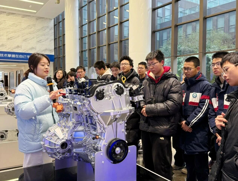 阿维塔研发中心作为长安汽车“六国十地”全球协同研发格局的核心枢纽,其新蓝鲸动力、“金钟罩”电池等自主研发技术,以及数智工厂的工业机器人作业场景,让学子们直观感受中国汽车工业的创新实力。学子们与企业工程师、设计师面对面交流,体悟工匠精神,也从长安汽车高研发投入、高专利产出的坚守中,感受到民族企业的责任与担当。