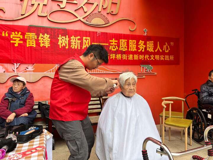 另一边的冶金好邻居伴山志愿理发角同样人气满满,志愿者早早摆好了理发工具,为有需要的居民和养老院老人提供免费理发服务。理发区前,老人们有序排队,志愿者一边细心地询问大家的理发需求,一边娴熟地为大家修剪头发,推子、剪刀在手中灵活操作,不一会儿,一个个清爽利落的发型就修剪完成。刚理完发的刘奶奶对着镜子看了看,满意地说:“志愿者手艺特别好,剪得很合我心意,社区办的这个活动太贴心了,不出门就能享受到免费理发,还能和老邻居们聚聚,太开心了。”从清晨到午后,志愿理发角的服务从未间断,志愿者用专业的手艺和贴心的服务,为大家送上了别样的元宵祝福,让便民服务真正走到居民身边。