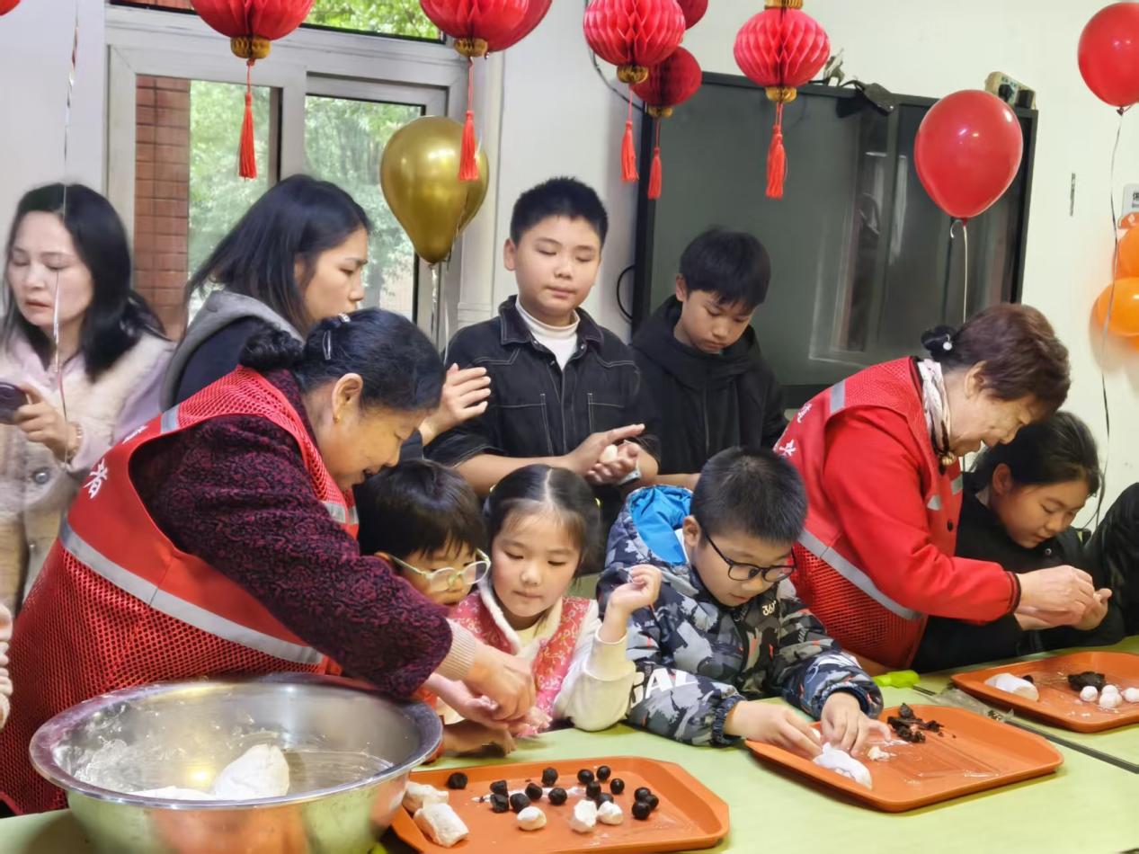 活动现场暖意融融,老少欢聚一堂。志愿者与小朋友们陪伴老年人围坐一起,揉面团、包馅料,老少协作、其乐融融。香甜软糯的汤圆出锅后,小朋友和志愿者们把汤圆端到老人手中,大家围坐共品、闲话家常,现场洋溢着邻里和睦的温馨氛围。社区还准备了贴合老年生活的趣味灯谜,老年居民踊跃参与、乐在其中,在益智互动中丰富了精神文化生活,切实感受“老有所乐”。