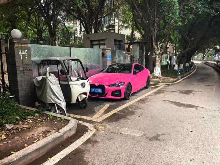 康体公园出入口机动车占用消防通道违规停车