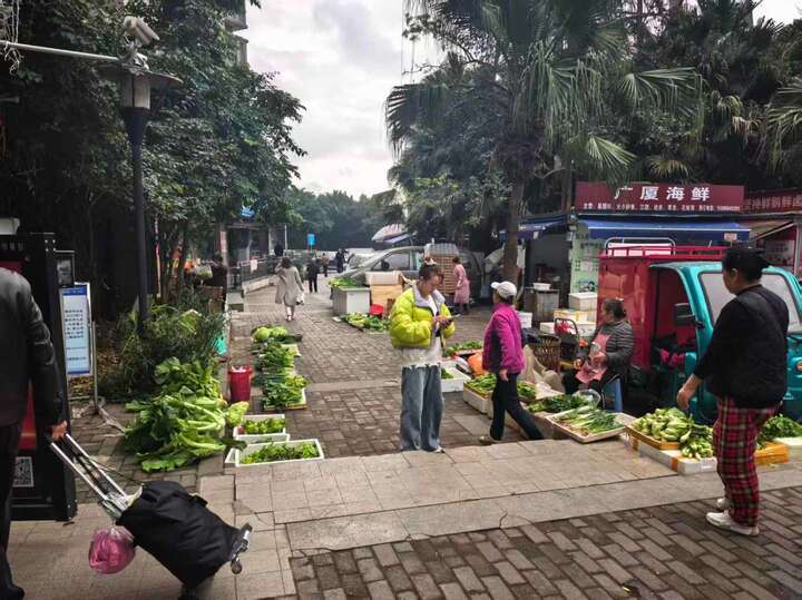 摊贩违规占用公共步道摆摊卖菜