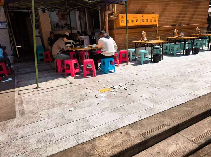 占道经营、地面大量垃圾散落