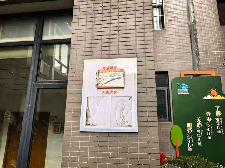 养老服务站外墙公示牌严重老化、破损