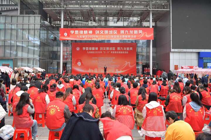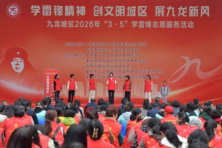 3月5日,第63个全国“学雷锋纪念日”暨第27个“中国青年志愿者服务日”当天,我区在杨家坪步行街广场举行“学雷锋精神 创文明城区 展九龙新风”主题志愿服务活动。区委常委、宣传部部长、杨家坪街道党工委书记杨维出席并致辞。全区各志愿服务工作协调机制成员单位、各镇街代表,以及优秀志愿者、志愿服务组织代表共200余人齐聚现场,以志愿之名传承雷锋精神,以实干之举为文明城区创建攻坚注入新动能。