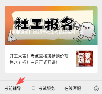 2.进入服务号对话框,点击左下方考前辅导。