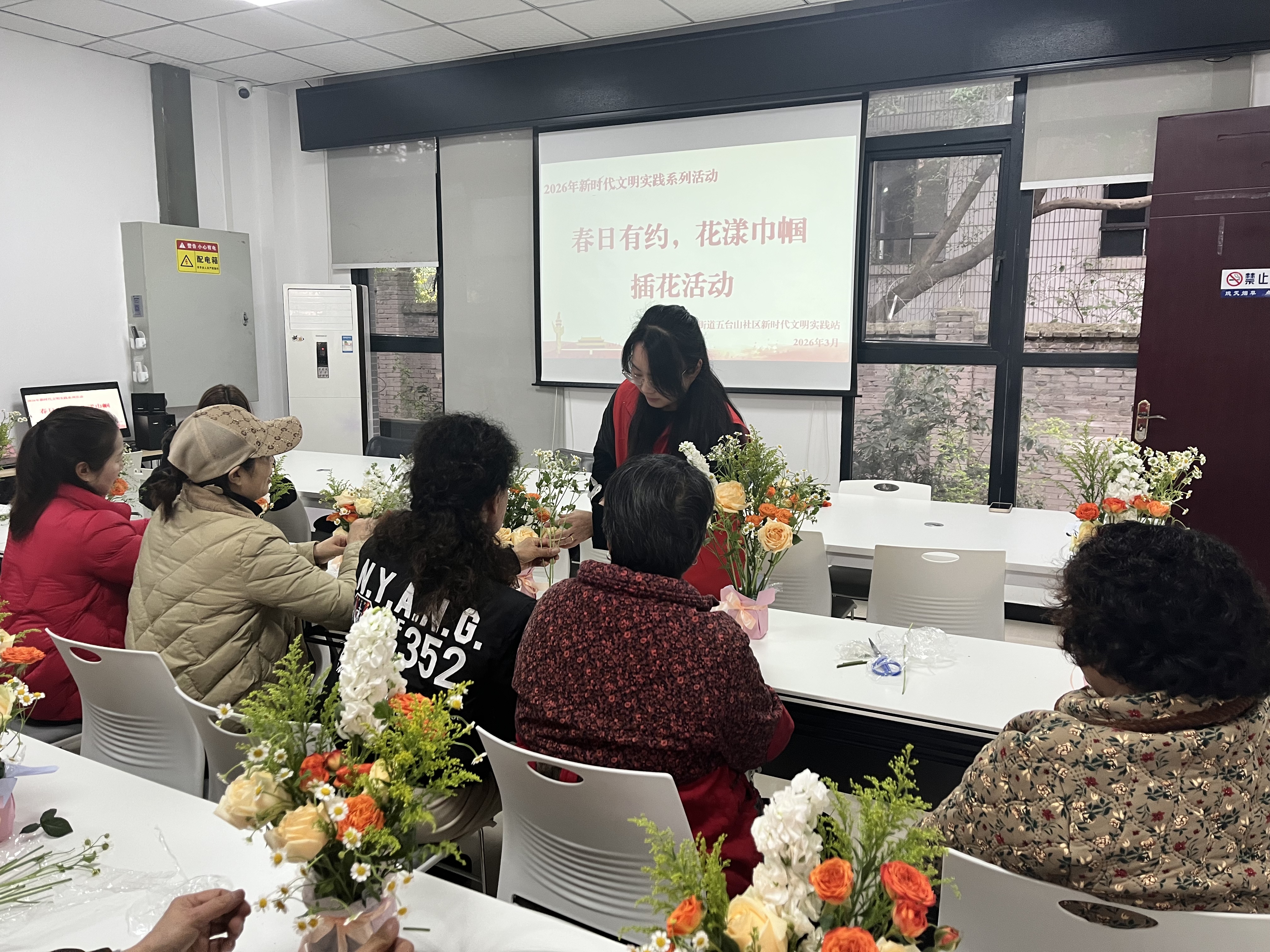九龙融媒讯(记者 冉冉 摄影报道)在“三八”国际妇女节即将来临之际,近日,二郎街道五台山社区新时代文明实践站以“春日有约,花漾巾帼”为主题,组织辖区女性居民及巾帼志愿者开展插花活动,通过花艺创作的形式,传递节日祝福,营造温馨和谐的社区氛围。