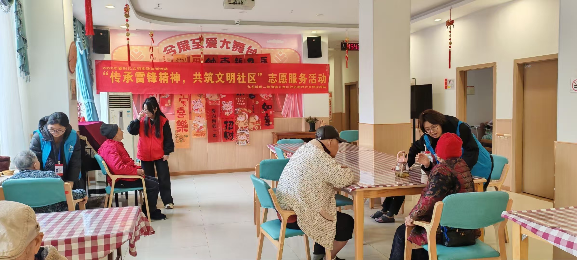 九龙融媒讯(记者 冉冉 摄影报道)近日,二郎街道五台山社区新时代文明实践站以“传承雷锋精神,共筑文明社区”为主题,组织社区工作人员、党员志愿者走进辖区养老院开展志愿服务活动,用实际行动传递温暖,让雷锋精神在敬老助老中绽放光芒。本次活动紧扣敬老助老核心,一方面聚焦老年人实际需求,开展养老生存待遇认证精准帮扶;另一方面注重情感陪伴,通过按摩、唠家常等形式,慰藉老年人心灵,让老人们感受到家一般的温暖。
