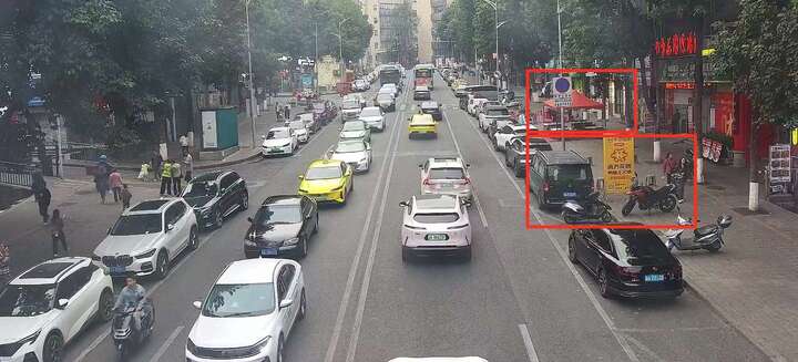 机动车辆在禁停标线内违规停放、人行道区域占道经营