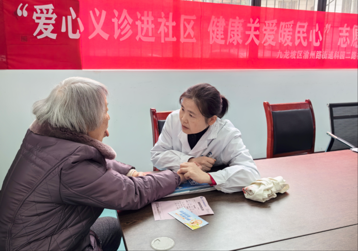 “李阿姨,您的血压有点偏高,最近要注意清淡饮食,按时吃药,有不舒服随时给我打电话。”社区卫生服务中心的家庭医生正在给李阿姨老人做上门体检,一边测量血压,一边耐心叮嘱。