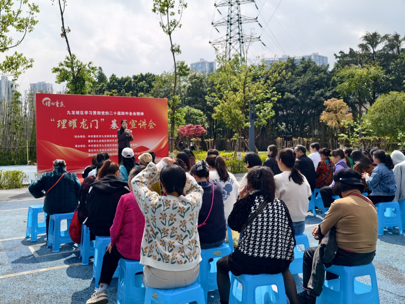 九龙融媒讯(记者 范坤民)为深入学习贯彻习近平新时代中国特色社会主义思想、全面贯彻落实党的二十大和二十届历次全会精神,持续推动党的创新理论“飞入寻常百姓家”,3月31日下午,杨家坪街道在天宝公园开展2026年一季度“理耀龙门”基层宣讲会,各社区宣传干部及群众代表共100余人参加。