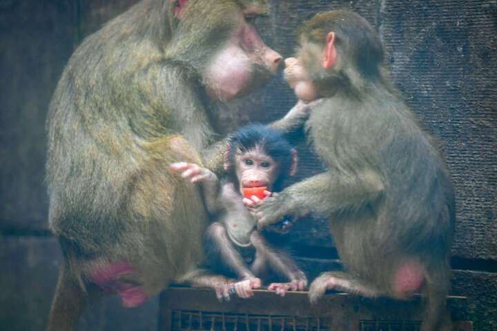 2月9日,4只豺宝宝顺利降生,由于豺妈妈生性高度敏感,外界一点干扰都可能让其出现应激反应,甚至弃崽、食崽,饲养团队当即开启严格的封闭管理,默默守护在旁,不打扰、只保障,直到幼崽满40天,能自主出洞活动、状态稳定后,才让它们正式与游客见面。2月11日,阿拉伯狒狒家族也添了新丁,这只通体黑毛的小狒狒,脸、耳、臀部透着粉嫩,天生就会紧紧攀附在妈妈的腹部,稍大些便喜欢骑在母背上“兜风”,胆子小小却十分警觉,一有动静就立刻钻回妈妈怀里躲起来,呆萌模样让游客直呼可爱。同月,狼群也顺利繁殖一胎,目前狼宝宝们还在洞穴中待育,虽然尚未露面,但园区里总能清晰听见它们奶声奶气的叫声,饲养团队持续减少人为干扰,静待这群小家伙踏出洞穴的那一刻。