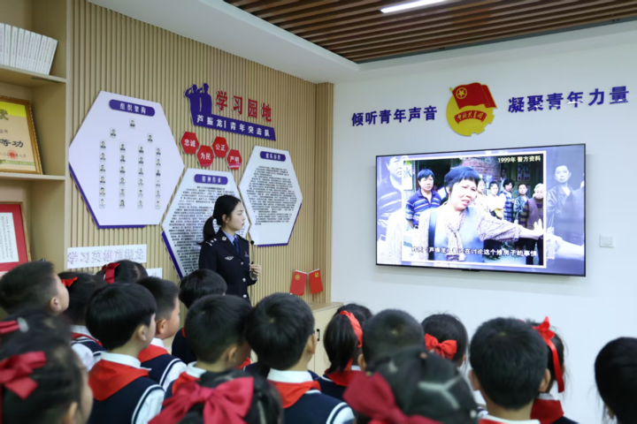 陵园内的誓言穿越时空,在二郎派出所的“芦振龙文化育人阵地”化作实践力量。展厅里,一张“二郎义警”的巡逻路线图格外醒目。民警拿起展板旁的老式手电筒——那是20多年前民警夜间走访时常用的工具,轻轻按下开关,暖黄的光束照亮了路线图上密密麻麻的标注:“现在‘二郎义警’的200多名队员,就像当年的芦振龙烈士一样,用脚步守护社区平安,去年这支队伍协助民警化解矛盾纠纷40余起,成为平安共建的助力。”学生们伸手触摸手电筒的金属外壳,仿佛感受到了英烈当年“把群众的事当自家事”的温度。