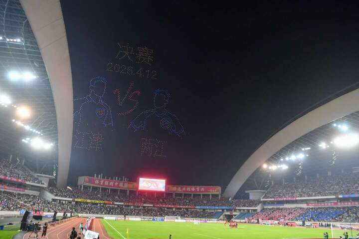 中场休息时段,2000架无人机腾空而起,以夜空为幕,光影为笔,呈现十组震撼画面:流光足球划破天际,渝超标识熠熠生辉,大田湾揭幕战记忆重现,巫山世界波经典定格,冠军奖杯闪耀夜空……最终“新韵重庆 渝超同行”主题字样点亮天际,漫天光影与现场欢呼交融,定格渝超荣耀时刻,为现场观众带来前所未有的视觉体验。