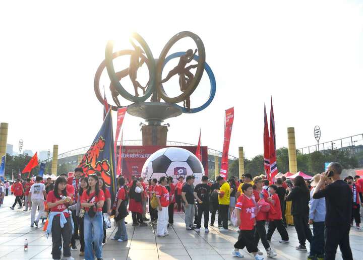 赛场内激情澎湃,赛场外同样热闹非凡。重庆奥体中心五环广场变身特色集市,美食、文创、互动体验一应俱全,烟火气与足球氛围深度融合,成为球迷观赛之余的欢乐聚集地。