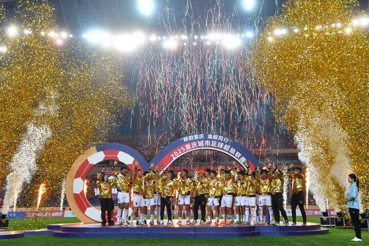 随着由川美教授设计、融合黄葛树、长江索道、轨道穿楼等重庆元素的专属冠军奖杯高高举起,2025重庆城市足球超级联赛正式落下帷幕。这场覆盖全城、全民参与的足球盛宴,不仅展现了重庆草根足球的蓬勃生机,更彰显了山城坚韧、忠勇、开放、争先的城市精神。