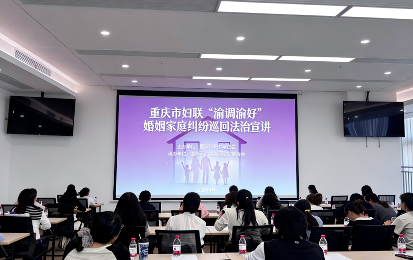 九龙融媒讯(记者 江秋悦)为扎实推进婚姻家庭纠纷源头预防化解,提升基层婚调队伍和妇联干部专业能力,4月9日,重庆市妇联“渝调渝好”婚姻家庭纠纷巡回法治宣讲走进我区,把法律知识与调解技巧送到群众家门口。我区100余名基层妇联干部、婚调委成员、网格员及妇女代表参加。