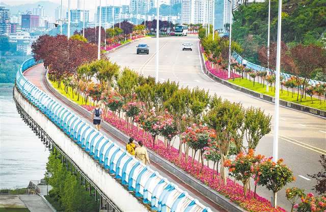 近日,九滨路沿线的1200余株树状月季全面进入盛花期,将美丽的滨江道路装点成春日里令人心动的“花漾走廊”,吸引了众多市民前来拍照打卡,感受春天的惬意。
