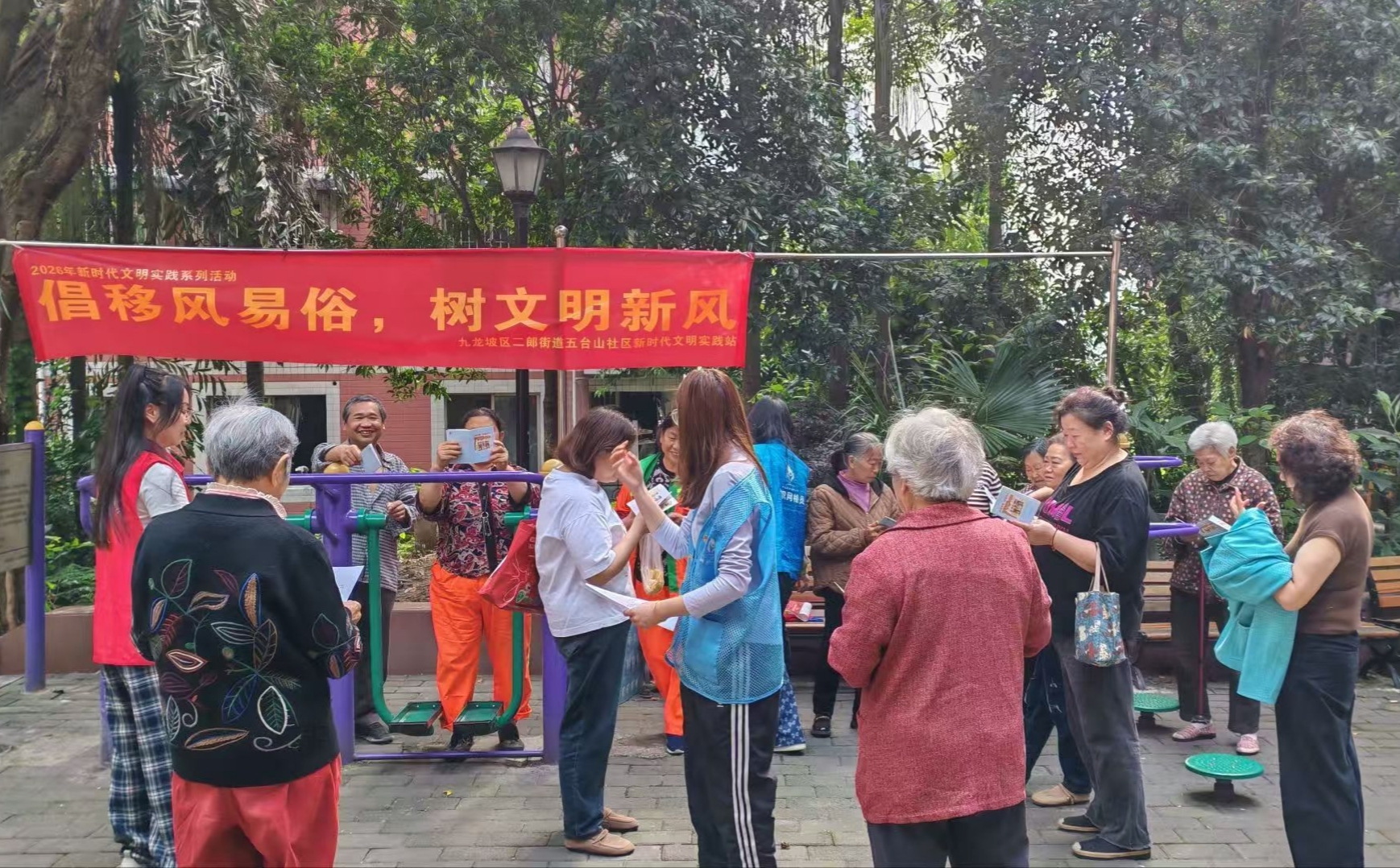 九龙融媒讯(记者 冉冉 摄影报道)近日,二郎街道五台山社区在九杨兴村小区开展了“倡移风易俗,树文明新风”主题宣讲活动,通过线下宣讲的方式,让文明新风尚深入人心。