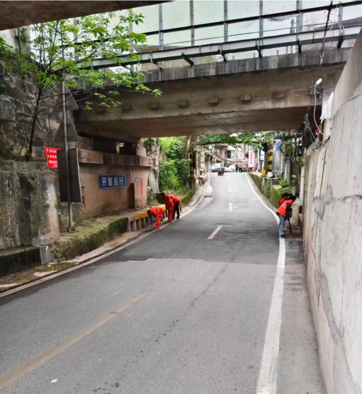 在城市排水排涝方面,各区县闻令而动,重点针对低洼路段、桥涵隧道、雨水口等关键部位开展拉网式清掏与疏浚。沙坪坝区住建委工作人员在覃家岗街道新桥铝制品厂铁路桥下清掏进水口,确保桥下低洼区域排水通畅;涪陵区于4月19日对滨江路沿线等城市低洼路段进行雨水篦子集中清掏,清除落叶、淤泥及杂物,保障路面收水能力。