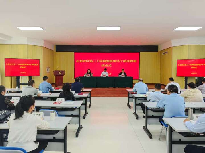九龙融媒讯 (记者 冉冉 通讯员 陈玫静)4月17日,九龙坡区第三十四期处级领导干部任职班结业式在区委党校举行,全体学员经过为期两周的集中学习培训,圆满完成各项学习任务,顺利结业。