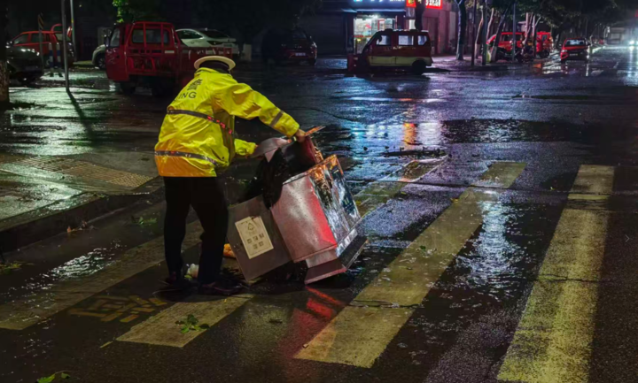 针对强降雨天气,区公安分局交管支队西彭大队结合辖区实际,及时调整勤务部署,重点加强易积水路段及车流密集路口巡逻管控力度。民警辅警冒雨对辖区重点路段开展全面排查,徒手清理排水口周边堆积的树叶、垃圾等杂物,确保排水畅通;及时将被大风吹落至道路中间的垃圾桶、断枝等障碍物清理搬离,消除路面安全隐患;在积水路段开展现场指挥疏导,提醒过往驾驶人减速慢行、谨慎驾驶、保持安全车距,全力保障雨天道路通行安全有序。