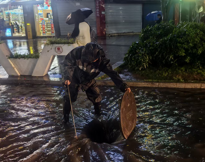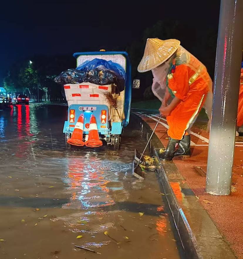 降雨发生后,为防范路面积水引发次生事故,西彭镇综合行政执法岗联合司科朗公司迅速集结力量,出动工作人员60人、应急装备10台套,连夜奔赴辖区各风险点位。针对暴雨冲刷导致落叶、杂物堵塞排水口的问题,工作人员逐一对辖区水篦子进行清掏,徒手清理堵塞杂物,疏通排水通道,加快路面积水排出;对积水较深、水量较大的重点路段,安排专人现场值守,设置警示标识,引导过往车辆、行人安全通行,全力防范坠井、车辆遇险等次生事故。