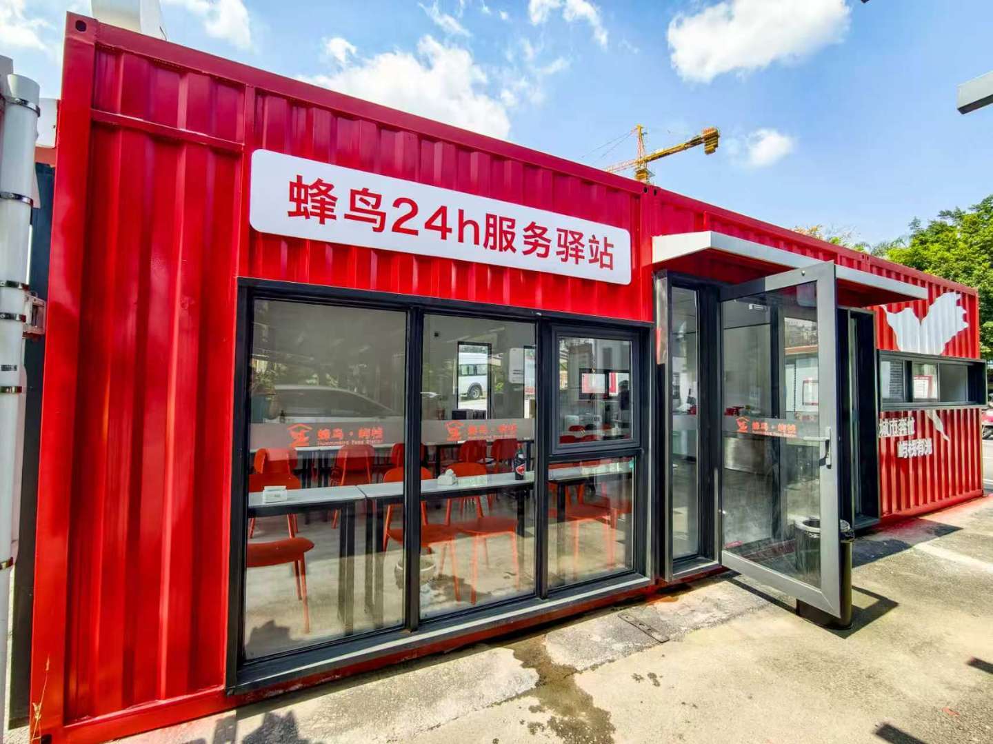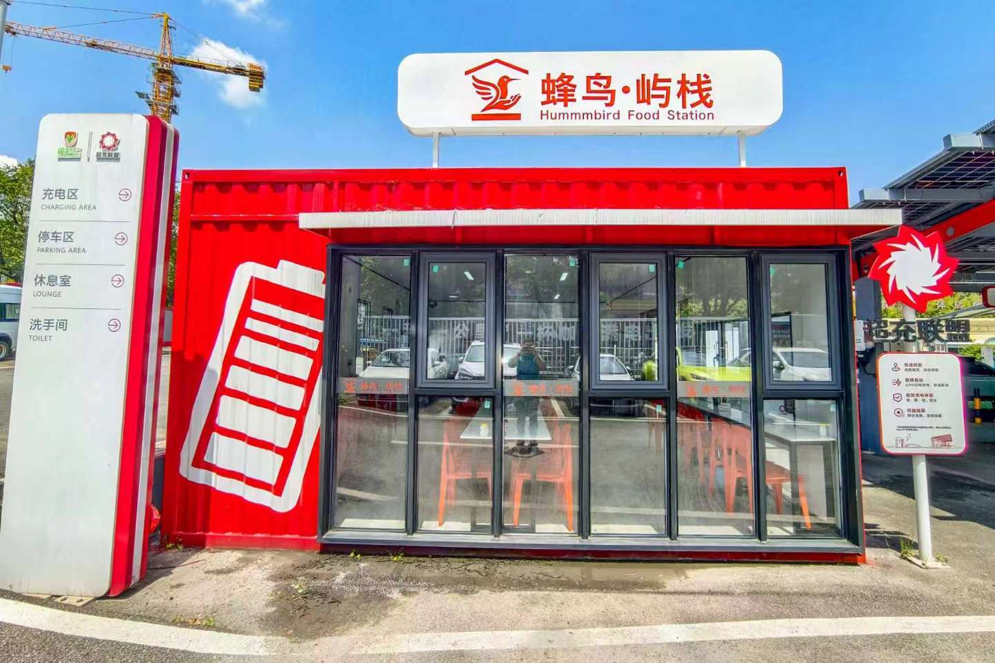 蜂鸟・屿栈奥体超充驿站采用标准化、模块化服务空间设计,全天候开放运营。站内配备舒适休息区、免费WiFi与充电插座、24小时开水机、共享微波炉、自助扫码洗衣机及共享按摩椅,充分满足司机群体休息、饮水、热餐、洗衣、放松等日常需求,让充电等待更舒适高效。