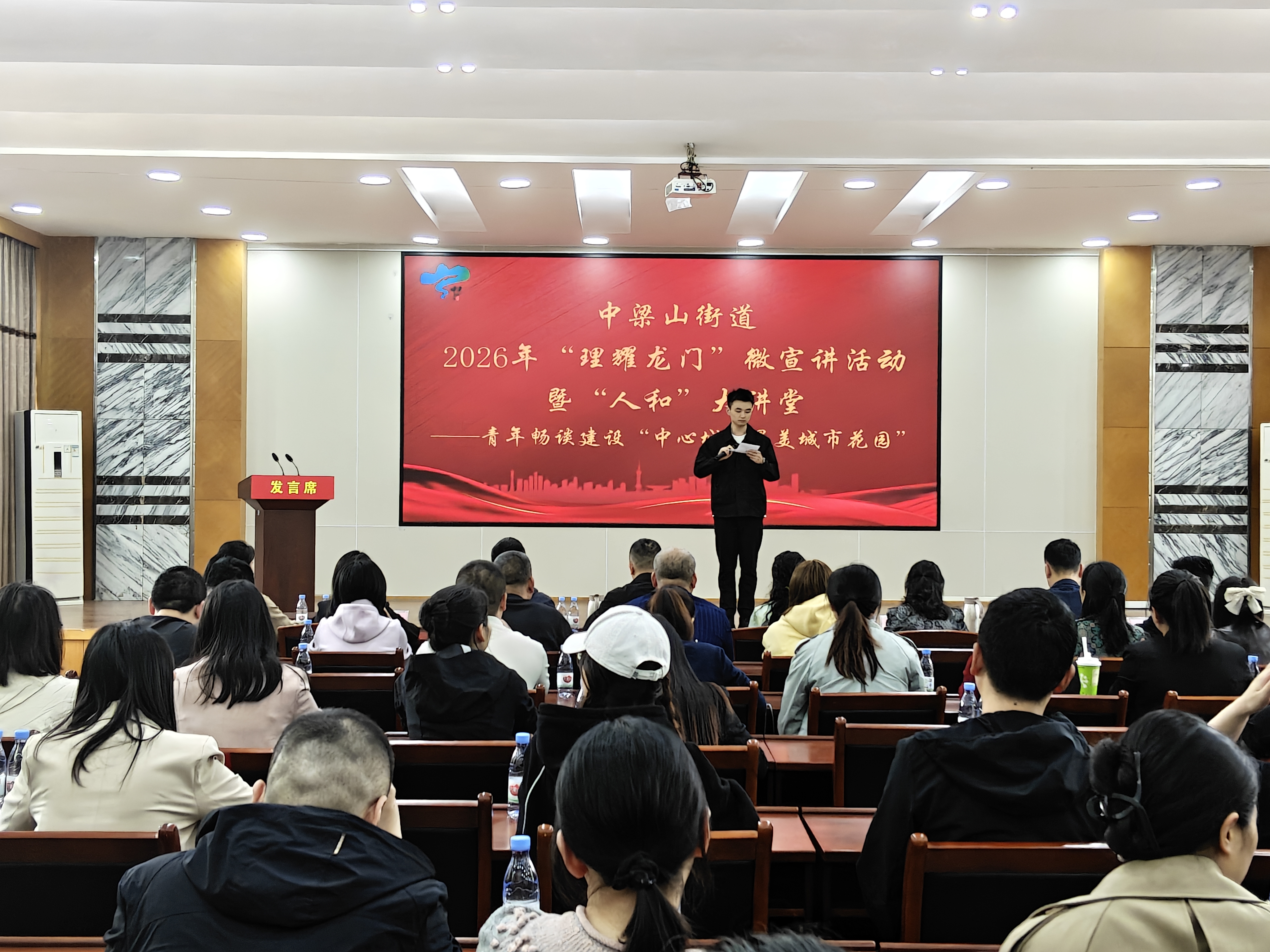 九龙融媒讯(记者 冉冉 摄影报道)如何将中梁山华岩片区打造成为“中心城区最美城市花园”?中梁山街道青年来出谋划策。4月22日,中梁山街道2026年“理耀龙门”微宣讲活动暨“人和”大讲堂——青年畅谈建设“中心城区最美城市花园”在街道会议室开讲。17名来自街道各岗位、村(社区)的青年选手轮番登台,围绕打造“中心城区最美城市花园”主题,结合自身工作实际谈思考、讲实践、献良策,用青春之声传递基层担当,为片区发展注入青春动能。
