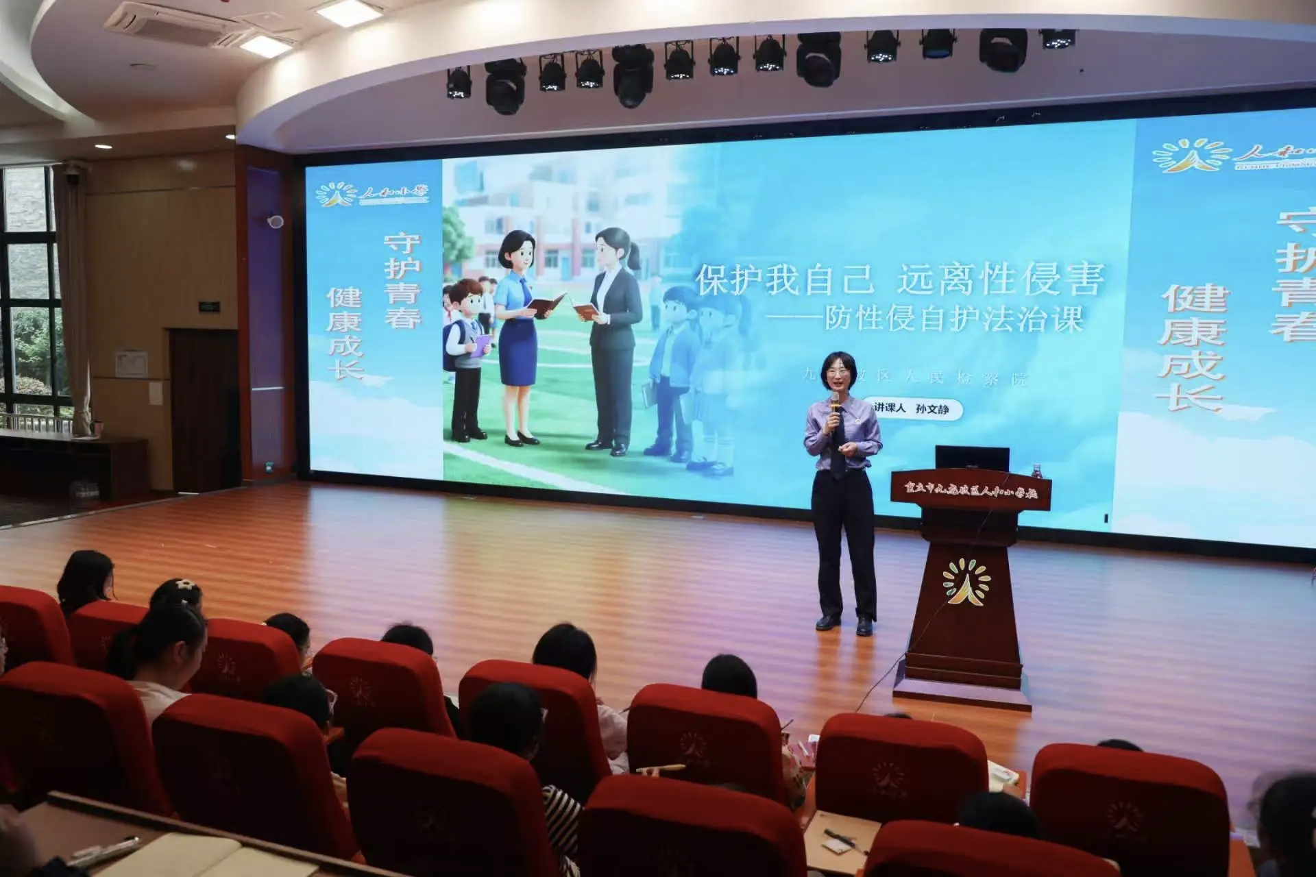 九龙融媒讯(记者 冉冉 摄影报道)“同学们,任何让你们感觉不舒服的身体接触,一定要勇敢说不,并及时告知家长和老师。”近日,区检察院未成年人检察部门联合壹心社工走进九龙坡区人和小学,以“守护青春健康成长”为主题,开展“双师同堂”法治宣讲。