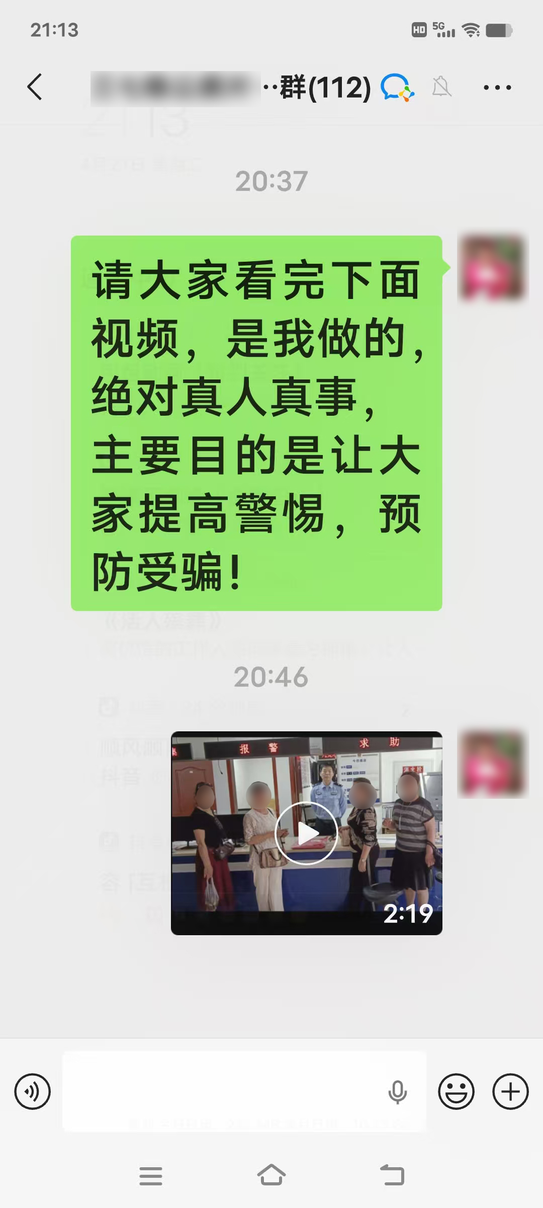 不同于许多受害者在被骗后因“爱面子”而讳莫如深,高阿姨不仅没有遮掩,反而自制了一条反诈视频,用亲身经历为身边的亲朋好友敲响警钟。